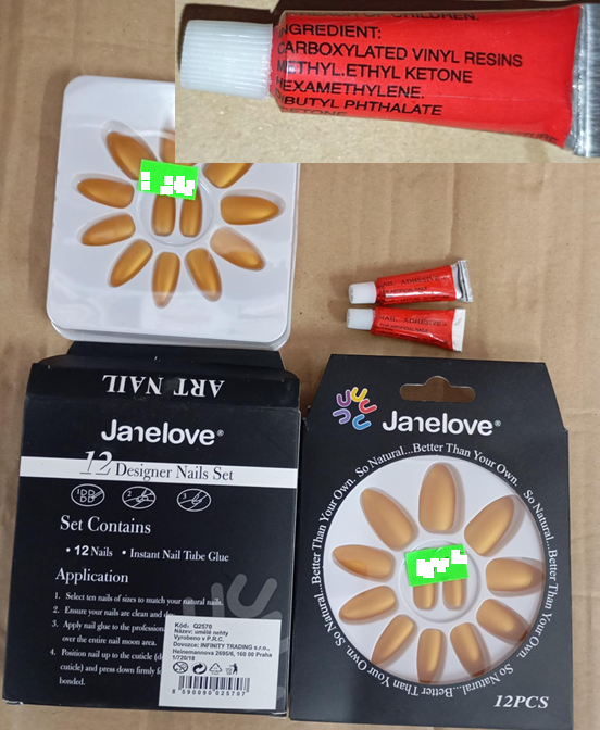 Nebezpečný výrobek - Janelove®, ART NAIL, 12 Designer Nails Set číslo šarže/ sp. do: Q2570, 1/720/18, umělé nehty