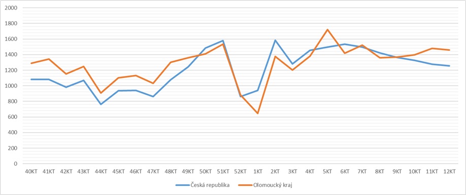 Evidované počty onemocnění Covid-19 v Olomouckém kraji v sezóně 2025/2026![]()