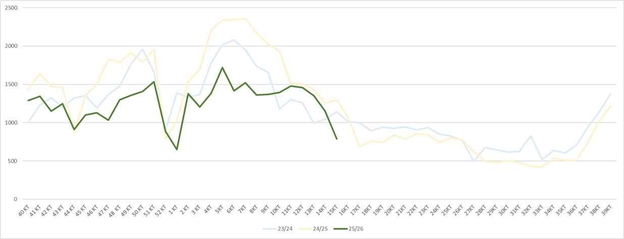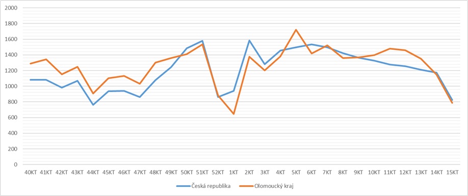 Srovnání vývoje nemocnosti v Olomouckém kraji v sezónách 2023/2024, 2024/2025 a 2025/2026![]()