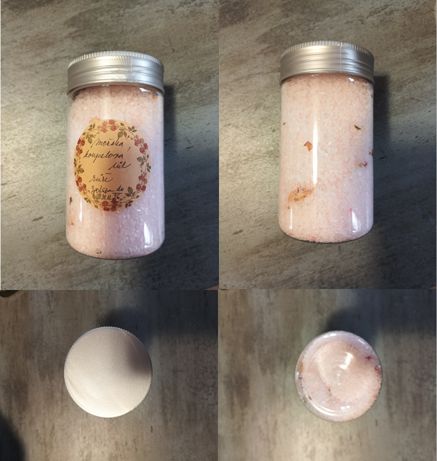 Nebezpečný výrobek - Mořská koupelová sůl „růže“ číslo šarže/ sp. do: Číslo produktu: 31. 12. 26 EAN: neuveden